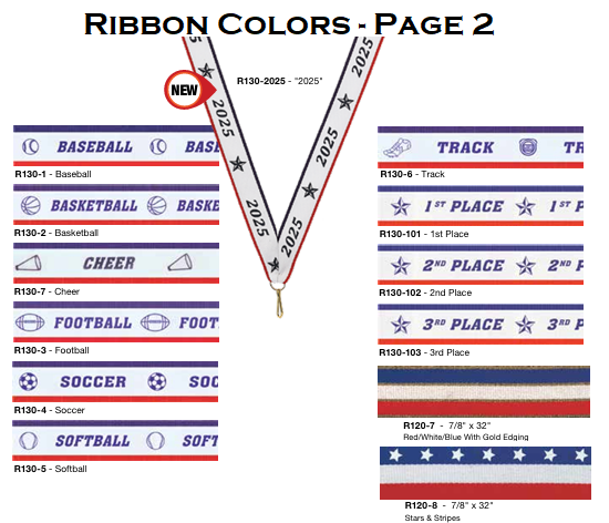 - StarBrite Medals – Bright metallic gold, silver, or bronze; available in 2" or 2 3/4" diameter