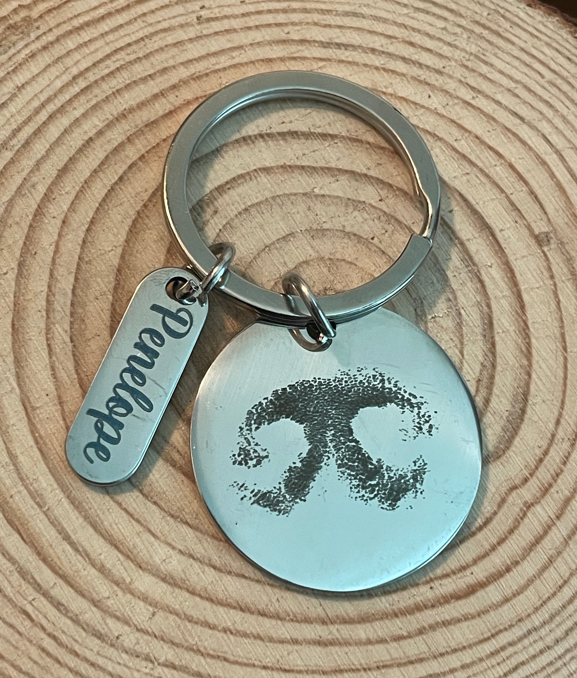 Celebrate your furry friend with our Custom Pet Paw/Nose Print Stainless Steel Keychain. This durable and stylish keychain features your pet's unique prints and a customizable charm for a personalized touch.